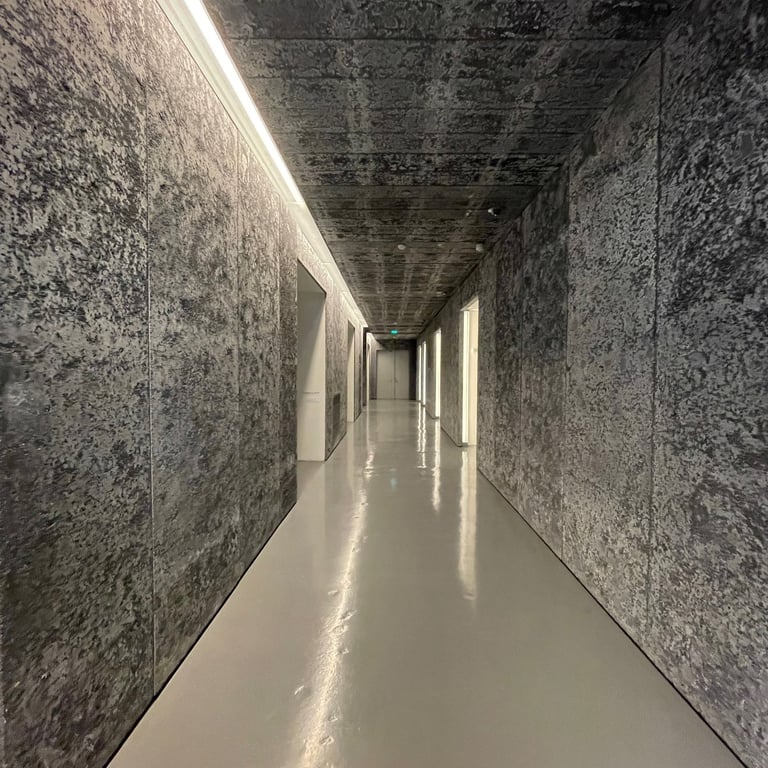 Ol&lO collabore avec des institutions prestigieuses pour créer des projets d'exception. À la Fondation LUMA, des espaces en béton ciré et stuc naturel offrent une expérience immersive.