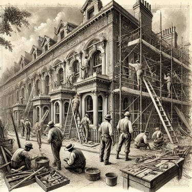 The industrial revolution transformed the production and use of gypsum thanks to new gypsum processing methods, enabling the production of harder plasters better suited to damp environments. (Construction History Society). The development of fiber-reinforced plaster also facilitated the mass production of complex decorative elements. These innovations popularized the use of plaster in Victorian construction, where plaster moldings and rosettes were synonymous with luxury and refinement.