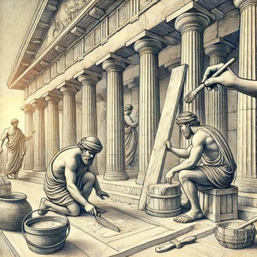 The Greeks perfected the use of plaster by introducing stucco, a mixture of lime and sand, which they applied to the exterior walls of temples to add a sophisticated, weather-resistant finish. (Britannica). The Parthenon in Athens is an emblematic example of the use of stucco in Greek architecture, where it was used to enhance architectural and sculptural details. In addition to its structural applications, plaster was used to create sculptures and ornaments, illustrating its versatility and ability to integrate harmoniously into the decorative arts.