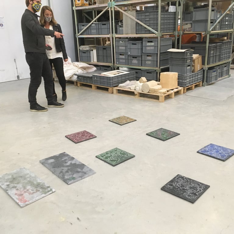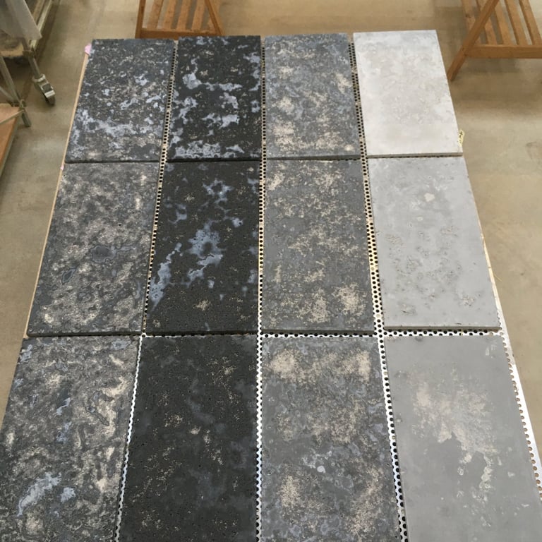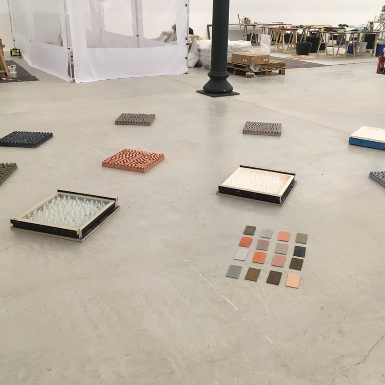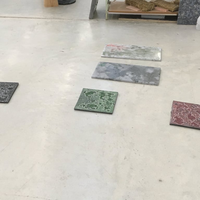 Au sein de cet atelier de recherche créatif, dédié à l'innovation et à la collaboration artistique et scientifique, nous avons développé diverses familles de bétons aux caractéristiques uniques, explorant de nouvelles possibilités de matériaux. Parmi ces innovations figurent le béton de paille de riz, le béton de terre, le béton de sel, le béton mousse et le béton acoustique.