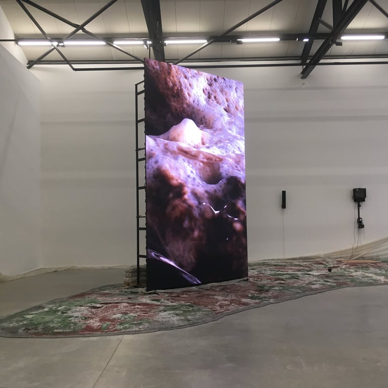 After UUmwelt est une commande spécialement créée pour La Grande Halle, ancien atelier de production de la SNCF, situé dans le complexe culturel de LUMA Arles. Pour cette installation, Pierre Huyghe a transformé le lieu en un espace immersif où humains et intelligences artificielles interagissent avec des organismes biologiques et techniques, des cellules virales et des formes en mutation, créant un environnement sensible et spectral, en constante évolution.